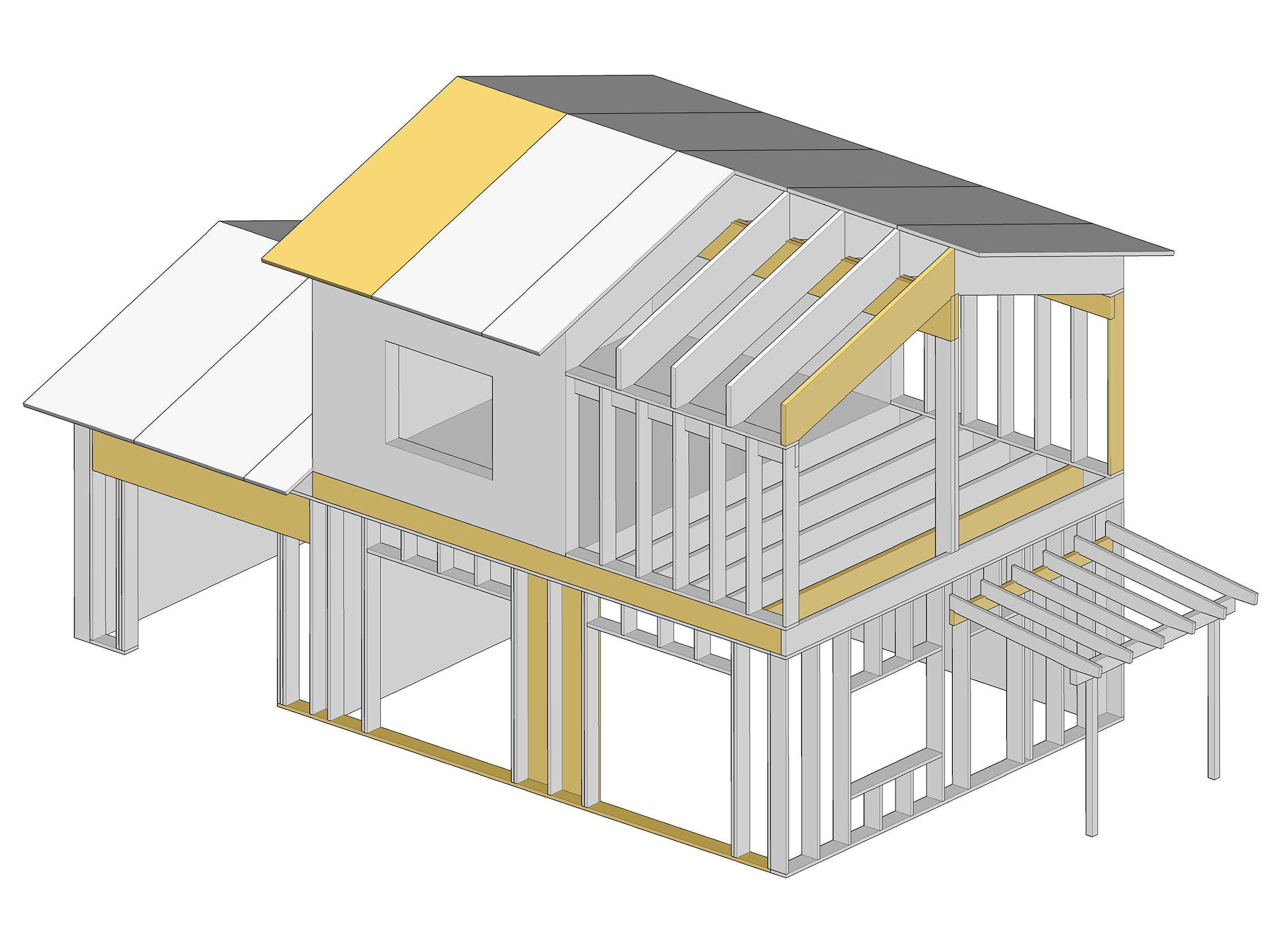 Kerto LVL Qp-beam is a stiff, rigid and precise roof beam with excellent strength-to-weight ratio. The use of the high and slender beams reduces the need of support grids enabling the construction of spacious rooms and increases the space for insulation. The increase in insulation spaces enables energy efficient structures. The cross-bonded veneer layers minimize swelling, cupping and other dimensional changes of the product. Qp-beam can be manufactured with a higher thickness-to-height ratio than Kerto S-beam, the ratio can be up to 1/12.