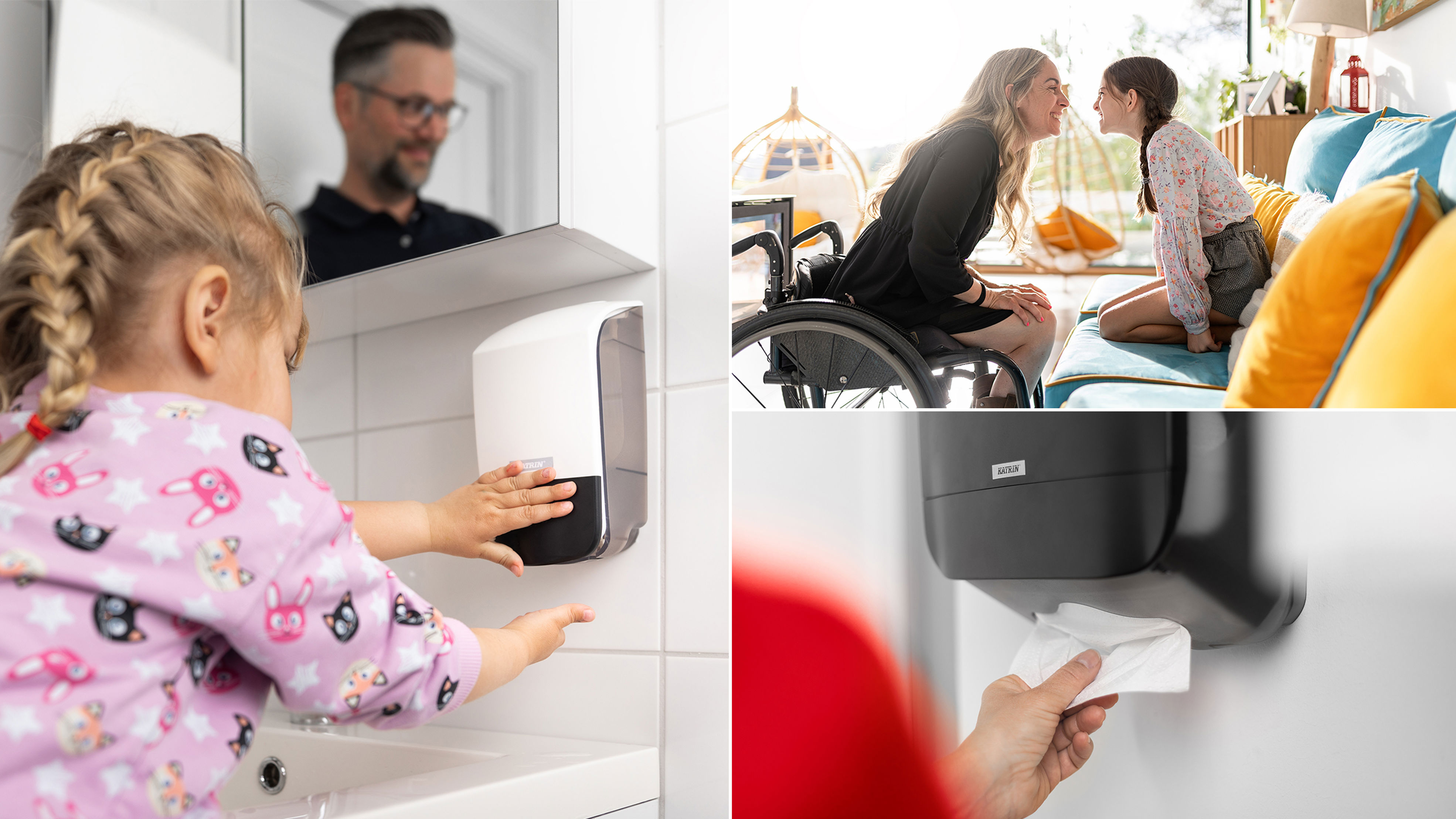 Our main strategy is to make our dispensers as ergonomic and user-friendly as possible. For example, the soap dispensers are marked with braille to simplify their use by those with impaired vision. The soap dispenser’s fully enclosed pressure surface makes it easy to use. Transparent sides make it easy for service staff to see when it is time to fill the dispenser with paper and soap, which means that the dispensers are always well-filled.