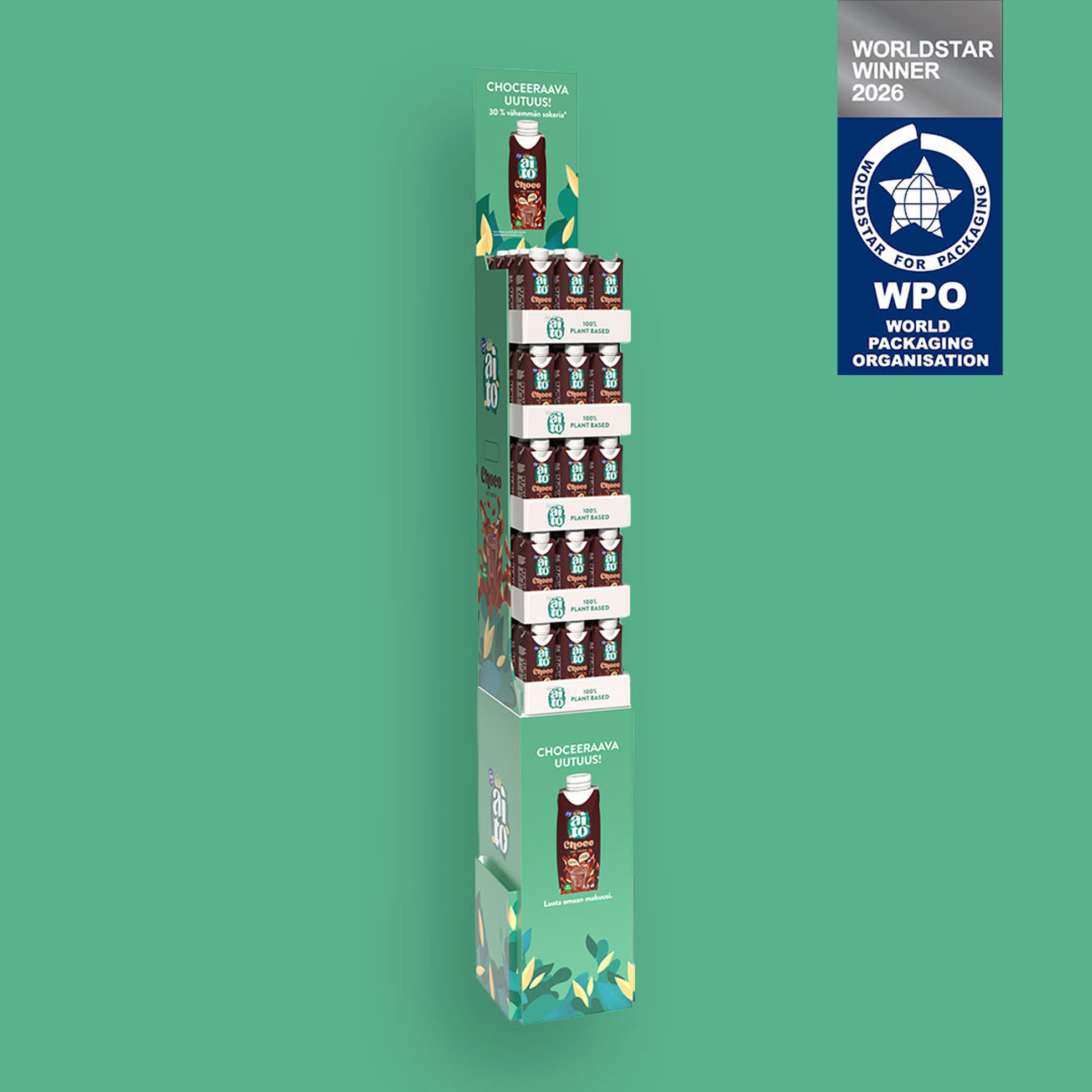 An innovative display created by Adara Pakkaus for Fazer Aito oat drink has been recognised with a highly regarded WorldStar packaging award. The awarded display uses Metsä Board’s coated MetsäBoard Pro WKL white kraftliner.