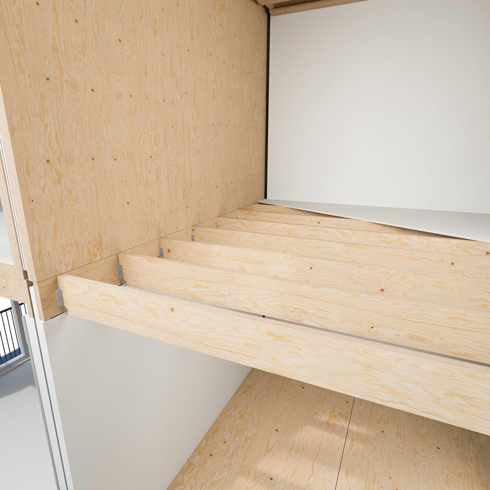 With Kerto LVL S-beams, it is easy to build high and spacious rooms, large windows, oriels, galleries, and balconies. S-beam has excellent strength-to-weight ratio which allows long spans with minimal deflection. The use of S-beams ensure material efficiency with customised product dimension. The thickness-to-height ratio of S-beams can generally be maximum 1/8.