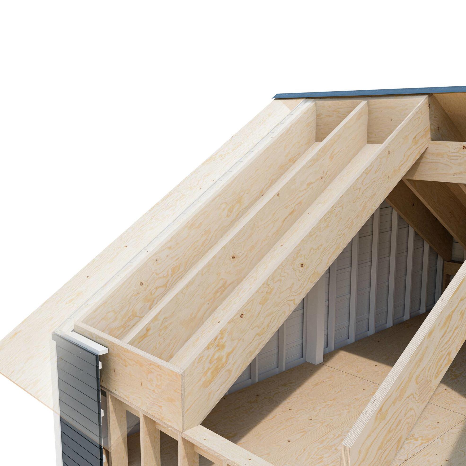 Kerto LVL S-beam is used as a rib and Kerto LVL Q-panel as paneling. The panel thickness and rib dimensions can be adjusted according to technical requirements. Openings for ventilation and electrical installations can also be installed inside the elements. The element manufacturer glues the roof system in the factory using screw or nail press bonding, thereby transferring a large part of the added value to itself. We advise on the introduction and optimization of production technology.