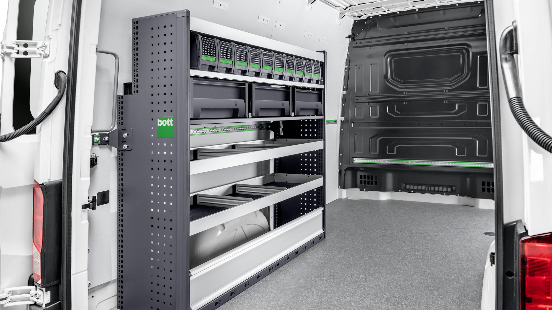 When it comes to service vehicles, Bott offers tailored racking systems for flatbed and box vans for customers working in facilities management and carpentry, for example. Some of Bott’s customers have a couple of vehicles and others a fleet of hundreds.