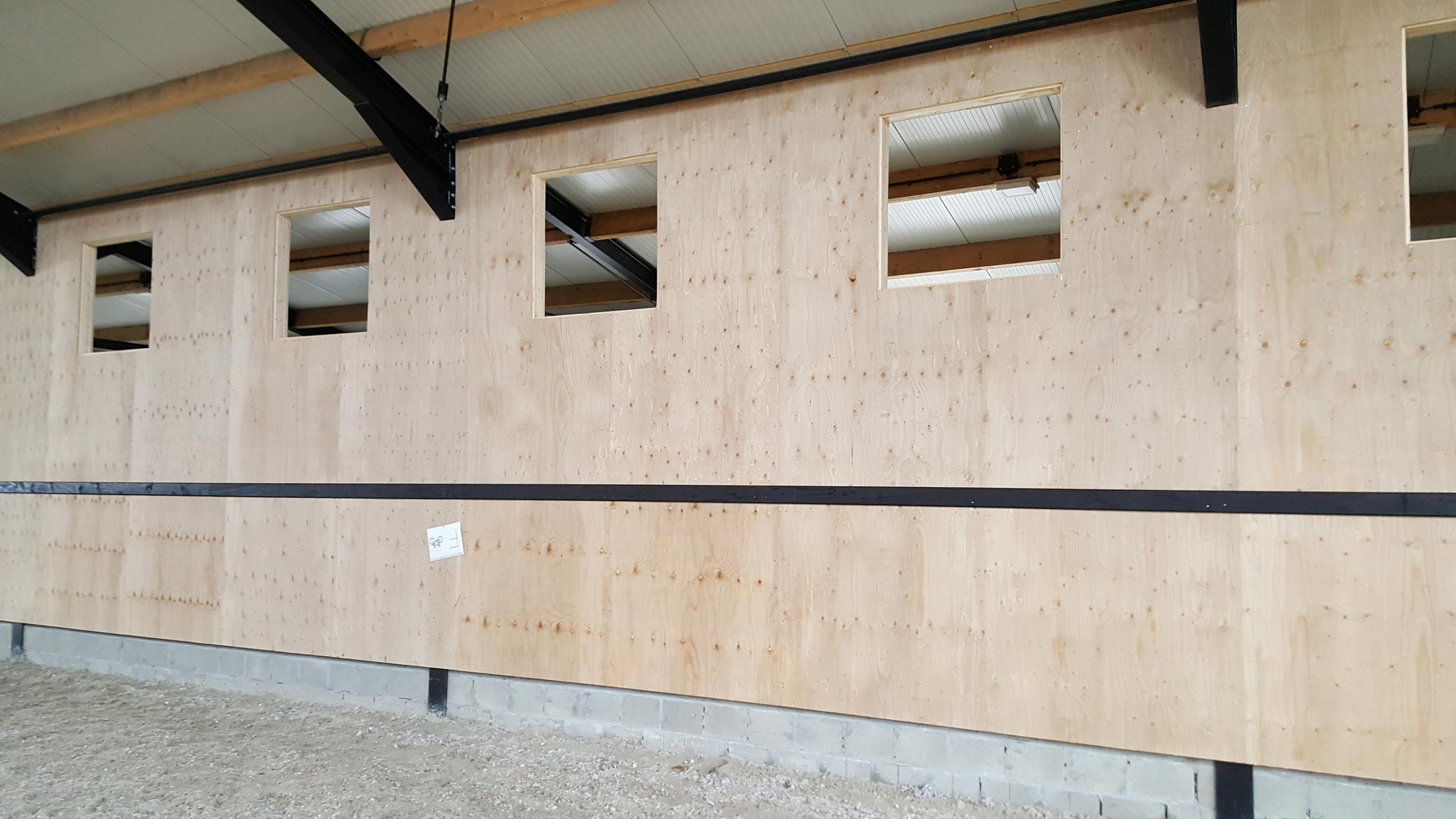 Plywood walling and a wooden frame for a riding hall in Belgium