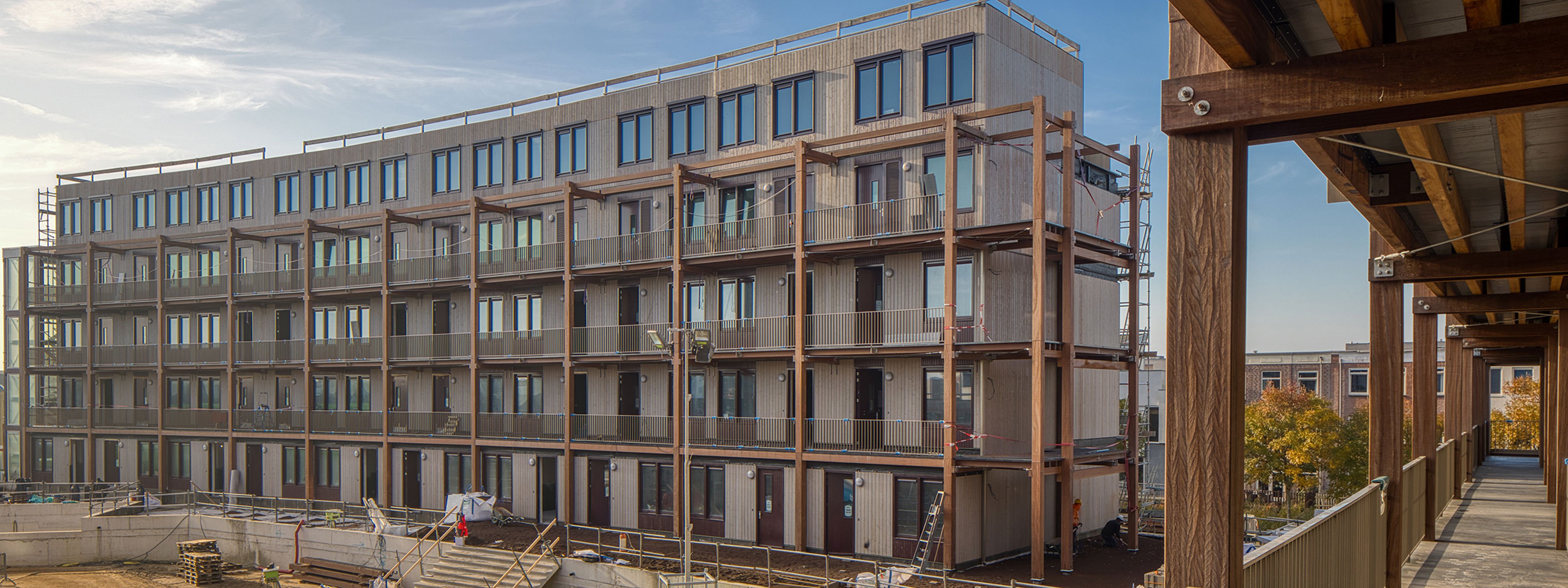 Metsä Wood's Kerto LVL has played a significant role in the Netherlands' first large-scale modular construction project, where the load-bearing structure has been built entirely from LVL. The five-storey residential complex in Almere, delivers 103 homes using an industrialised modular construction system developed by housing corporation De Alliantie and constructor Koopmans Bouwgroep. The project demonstrates how modular LVL construction can accelerate building delivery and reduce environmental impact while addressing construction sector challenges including longer timelines, labour constraints and the need to reduce carbon emissions.